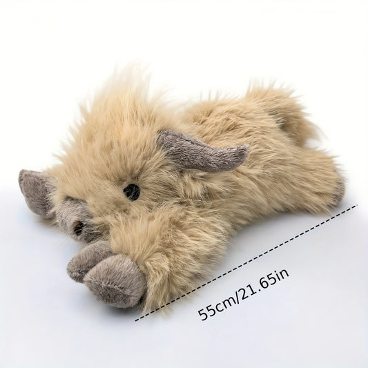 13.78/17.72/21.65inch Fluffy Highland Cow Plush Toy - Super Soft Long Haired Stuffed Animal with Horns, Scottish Cattle Plushie for Nursery Decor & Gift for Kids & Adults